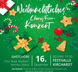Wir freuen uns, dass wir in diesem Jahr gemeinsam mit unsrern Gastchören wieder ein abendfüllendes Konzer zur Weihnachtszeit in die Festhalle Kirchardt bringen können. Dabei steht nicht nur Weihnachtliches auf dem Programm! Als Gäste dürfen wir den „Meisterchor“ Chor Royal aus Mosbach und den Chor „Atemlos“ aus Elsenz begrüßen. Karten […]